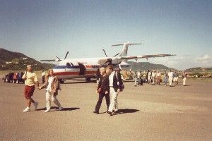 Day 11 - "It looked like the designer of the airplane noticed he had forgotten the wings when the plane was ready and, with no room left on its sides, put them on its top. "After spending the night in Miami, where I bought a simple camera for a friend that I could use the rest of the trip, I flew early to San Juan and from there to Tortola, in the British Virgin Islands (BVI). I saw the Bahamas and Turks & Caicos from above on the way to San Juan. The day was beautiful and sunny. Beside me on the plane, an American who was going to meet her husband and friends for a week sailing, The Virgin Islands are known as being a great place for sailing, with winds and currents that make sailing easy even for beginners. She is a travel agent and started talking to me about the islands of the Caribbean she knows. The flight - in a small strange plane - is not long, but she had enough time to tell me about so many places, all of which with a special hotel that she described as a perfect place for a honeymoon. Well, I wouldn't mind eight weeks of honeymooning, but I doubt I could even afford a single night in any of those hotels!