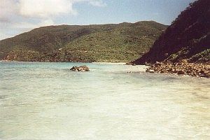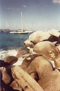Day 13 - "My eyes were closed and I felt some rain. When I looked up, there was a huge rainbow! What a wonderful way to finish my stay in Virgin Gorda!" My alarm clock was the crying of a baby in the house next to mine. A bit early, so I did some stretching before getting out of bed, trying to remember the exercises I did at Club Med. I met Jane and Mark just before the taxi arrived punctually at 8:30. Less than 1/2 h after we were at Savannah Bay, arranging with the driver to pick us up later.