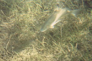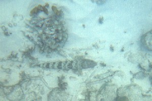 (Synodus intermedius)I am not sure if this lizardfish is really the sand diver, but I think it was too large to be the smaller and less common bluestriped lizardfish (Synodus saurus). They rest on the bottom, motionless.